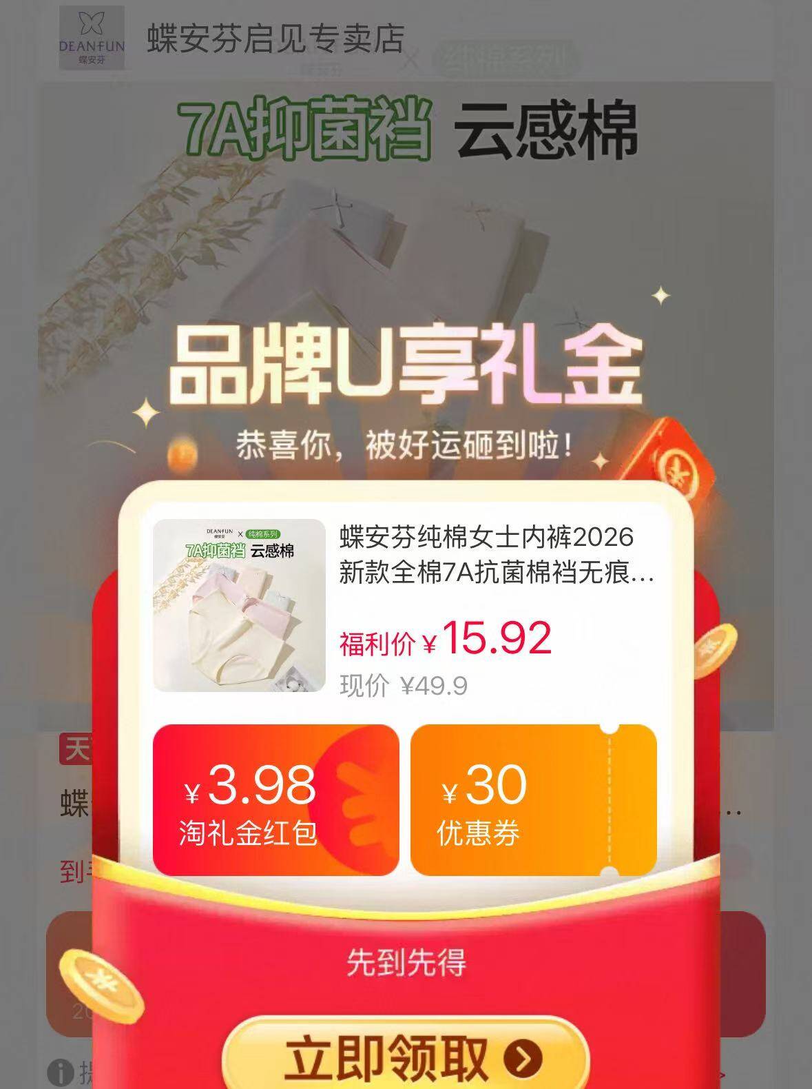 蝶安芬纯棉内裤3条15元.9 中/高腰同价,先尺码后款式好单发报员2026年03月04日 15:100举报 蝶安芬纯棉内裤3条15元.9中/高腰同价,先尺码后款式https://m.tb.cn/h.i1KLXmR复制文案