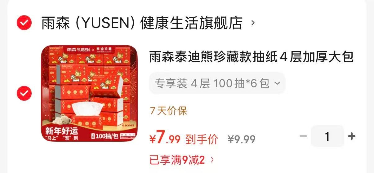 雨森 泰迪熊珍藏款抽纸4层加厚 100抽*6包【7.9】