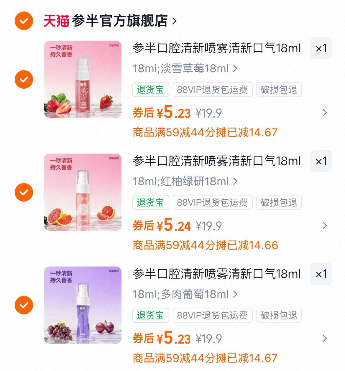 拍3件折5亓/件 参半 口气清新喷雾剂18ml