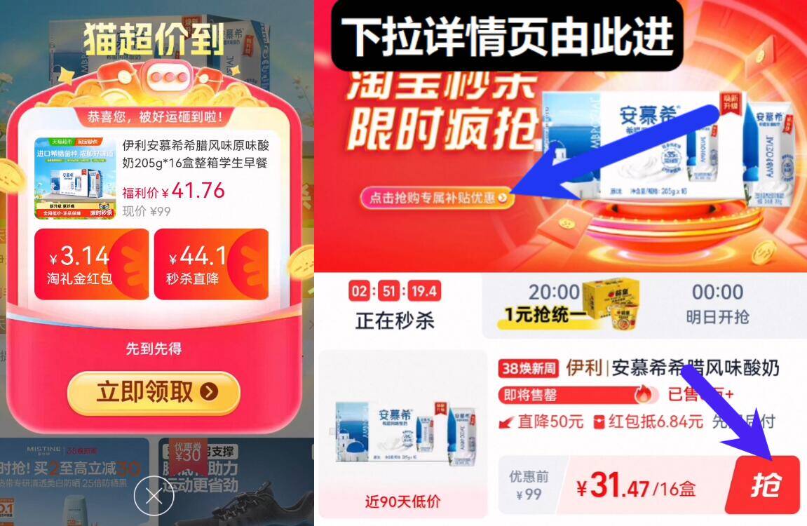 神圿快锁无券折1.9亓/盒 下拉详情进秒杀会场拍31.4亓 需叠加标题下99-10购物券好单发报员2026年03月04日 19:390举报 神圿快锁无券折1.9亓/盒下拉详情进秒杀会场拍31.4亓需叠加标题下99-10购物券【伊利】安慕希酸奶205g*16盒https://m.tb.cn/h.i1FD2mu复制文案