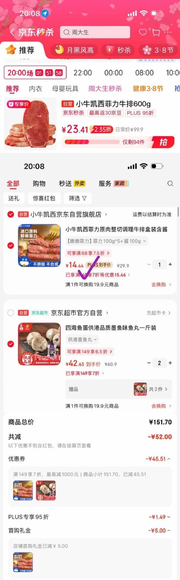 小牛凯西菲力原肉整切调理牛排盒装含酱包600g