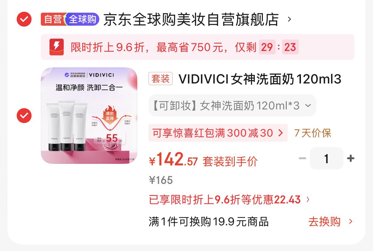 浏览加购弹9.6折立减 凑后142.6亓