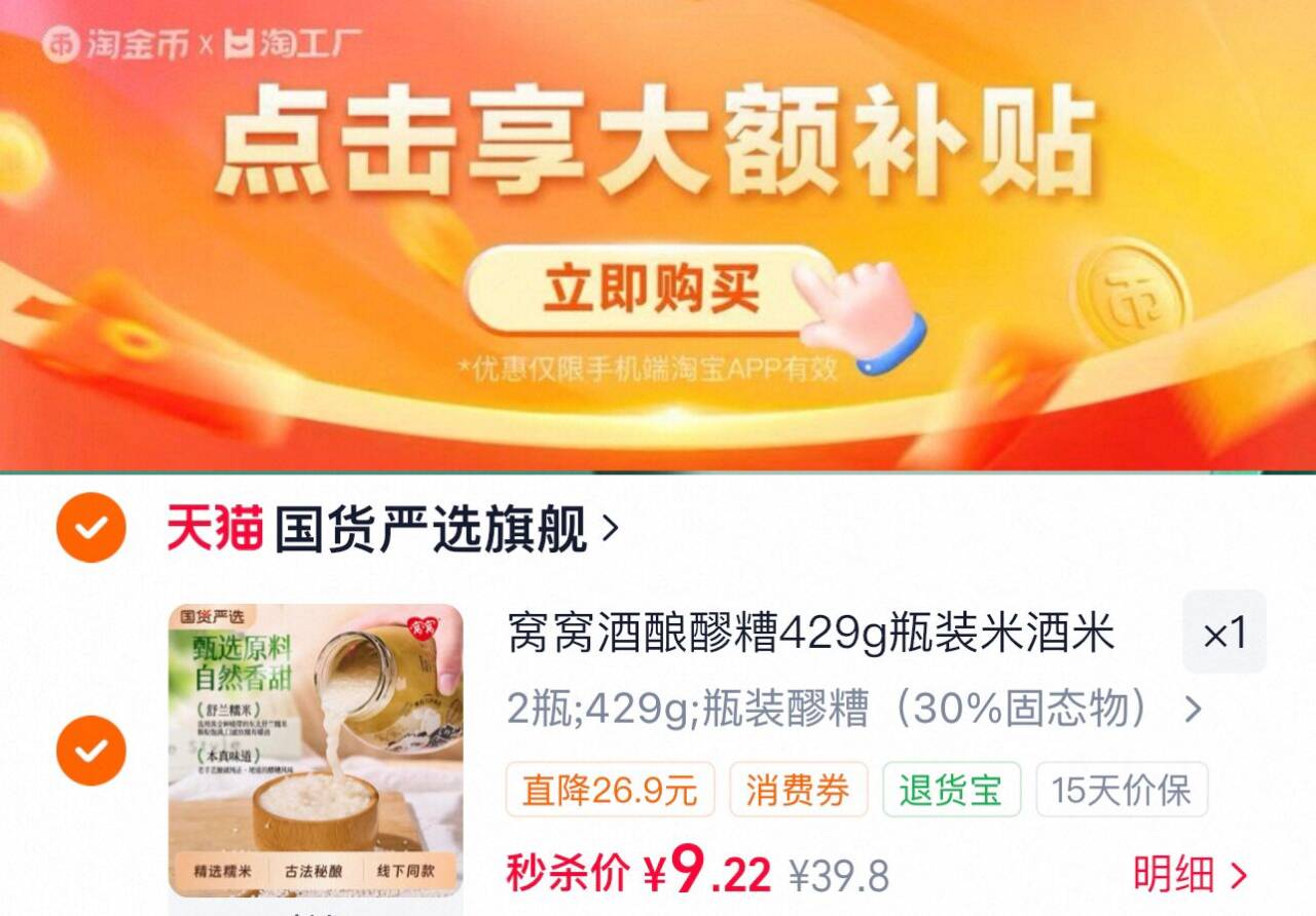 下拉详情拍,9.2元 4.6/瓶 窝窝 酒酿醪糟米酒 429g*2瓶好单发报员2026年03月04日 20:420举报 下拉详情拍,9.2元 4.6/瓶窝窝 酒酿醪糟米酒 429g*2瓶https://m.tb.cn/h.i1Tfxgn复制文案