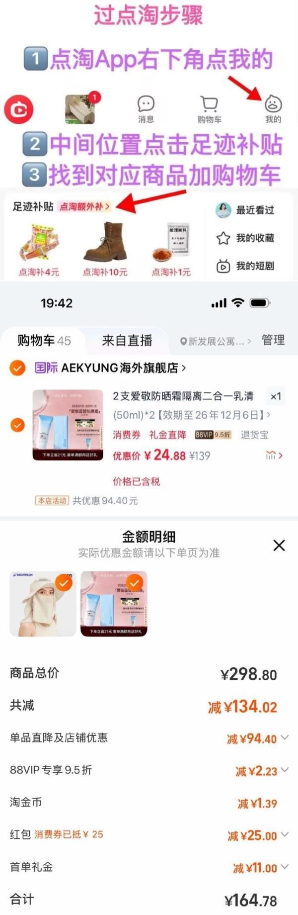 点淘app-商城-足迹加购,11首单,vip凑后【24.88】