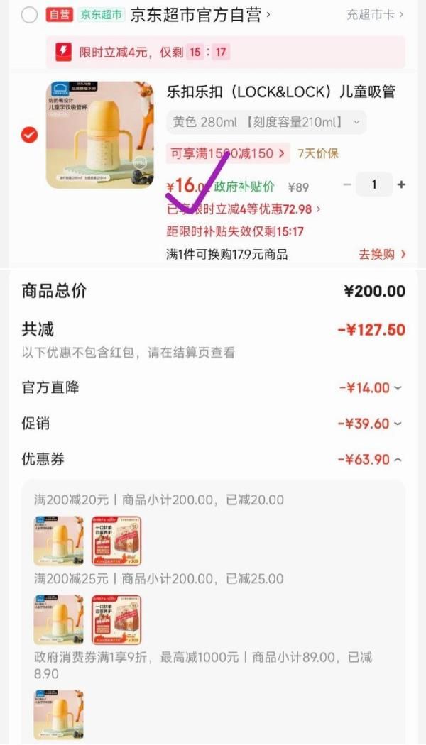 乐扣乐扣 儿童吸管杯PPSU水杯280ml黄色