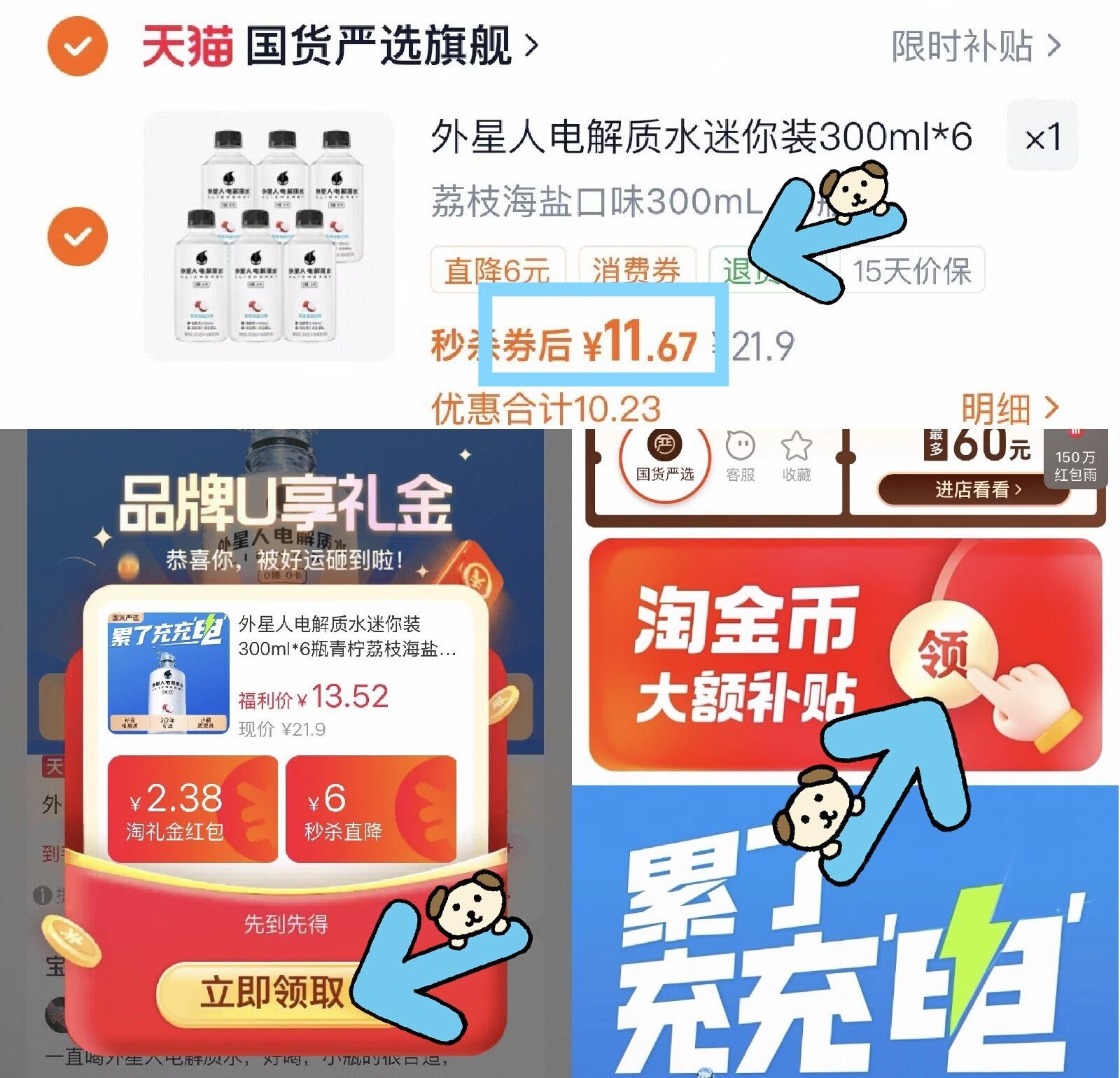 外星人电解质水300ml*6瓶 11.6元好单发报员2026年03月30日 15:110举报 6瓶才11.6元!300ml大瓶的1.9元/瓶无敌 比水还便宜!---外星人电解质水300ml*6瓶复制这条信息打开手机陶宝https://m.tb.cn/h.iRx473q 下拉淘金币 2.38淘礼金复制文案