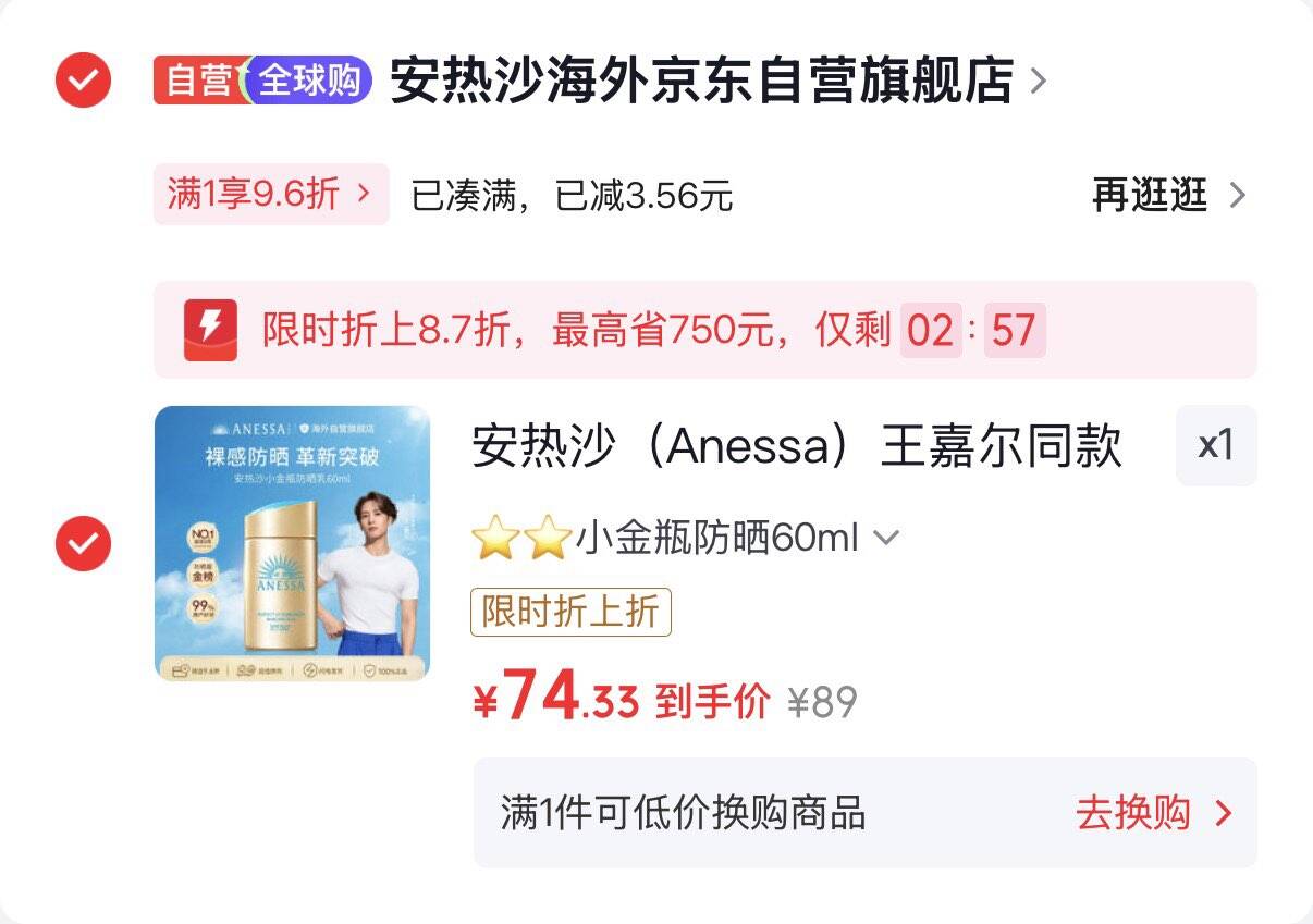 安热沙小金瓶防晒霜60ml 74.3元发报员Z2026年04月05日 12:480举报 安热沙 小金瓶防晒霜60ml 浏览弹限时立减74.3元https://u.jd.com/c6okSNS 需#小程序:京东够物 福款复制文案