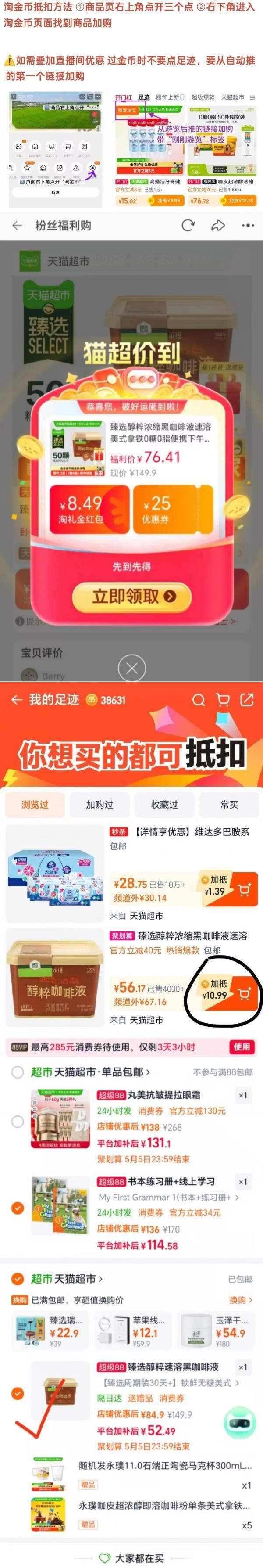 领弹窗礼金 券,淘金币加购(显示抵扣结束不用管,进去看有抵10.99就对)
