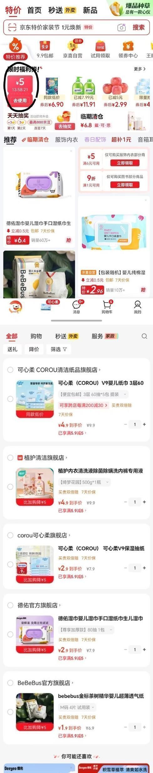 京东app—特价—左上领5券(大部分号有,没有的留意14点跟20点场补充)