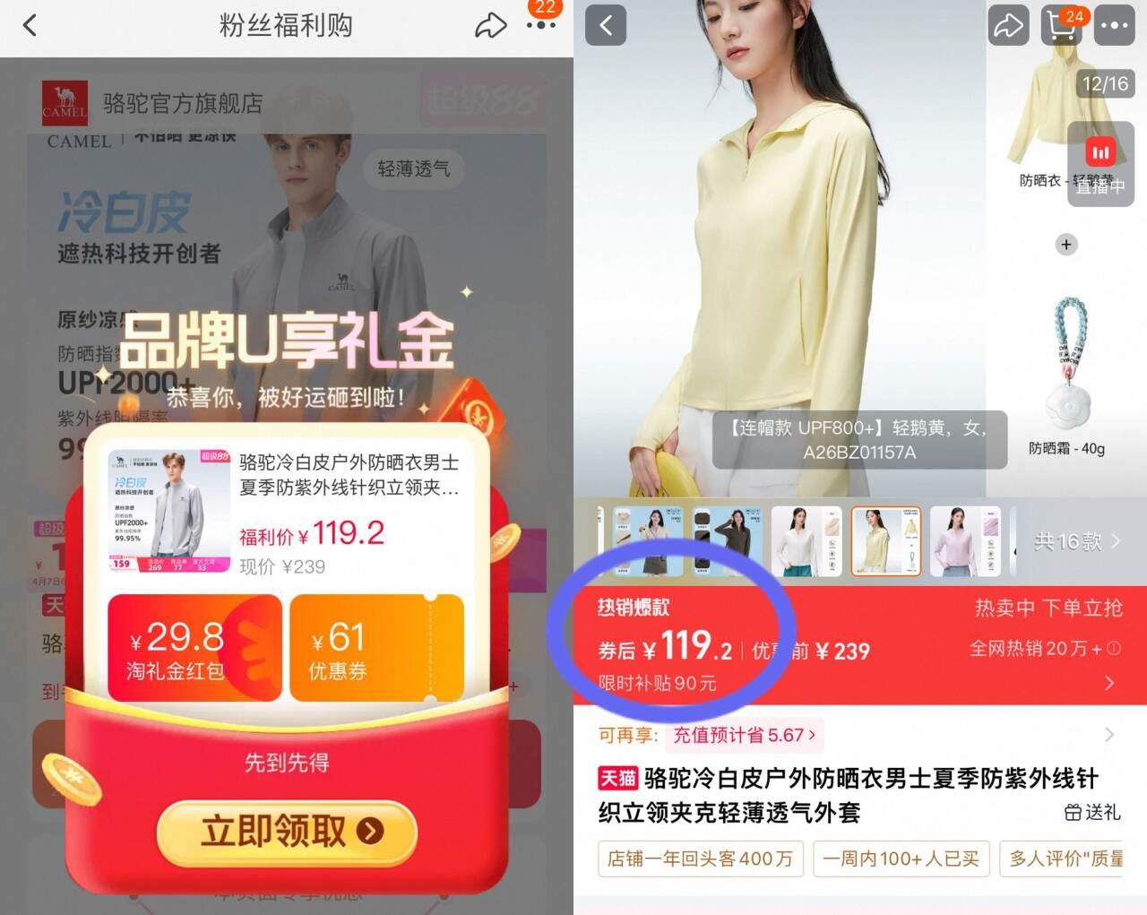 骆驼男女冷白皮防晒衣 119元发报员Z2026年04月10日 10:150举报 119元! 十几中歀可选【骆驼】男女冷白皮防晒衣 真正的UPF50 凉感一整夏谁穿谁舒服 夏天续命装备-https://m.tb.cn/h.iMeZWQa复制文案