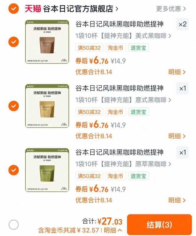 谷本日记黑咖啡任选4件 提神 燃脂 0负担 刷脂来 健身前喝一杯 打工人续命 神器 到手40包 发报员Z 2026年04月10日 12:02 0 举报 谷本日记黑咖啡 任选4件 提神 燃脂 0负担 刷脂来健身前喝一杯 打工人续命神器 到手40包 折合0.6/杯┄https://m.tb.cn/h.iNkmiwP复制本段话到桃宝打开加勾 复制文案