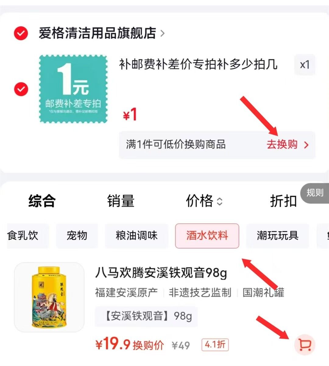 任选1! 去购物车换购