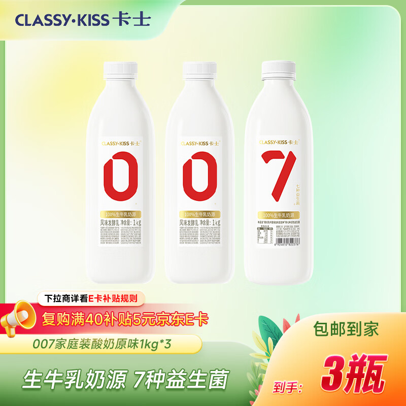 自营卡士 007家庭酸奶 1kg*3瓶