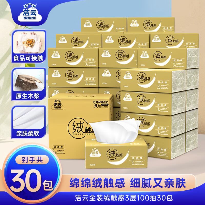 洁云 绒触感抽纸 100抽*30包