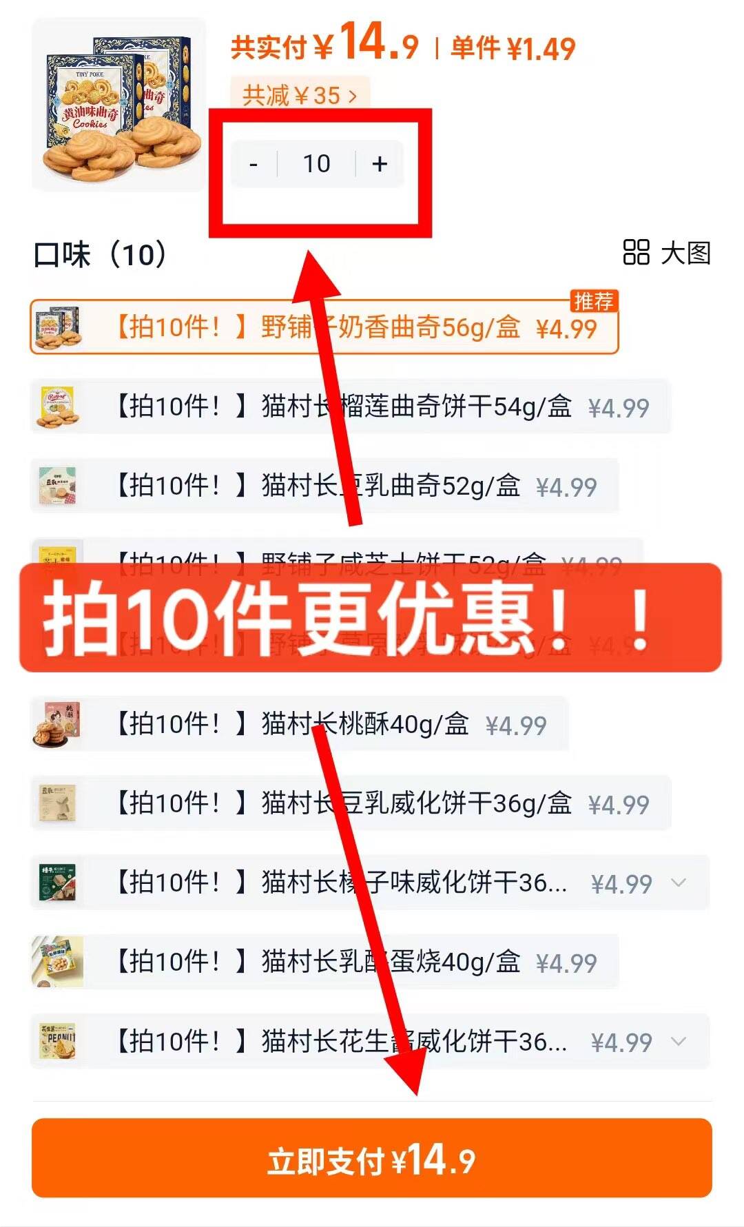 猫村长饼干组合拍10件 14.9元发报员Z2026年04月10日 20:380举报 速 猫村长饼干组合拍10件14.9元 1.4元/件 快冲啊!https://m.tb.cn/h.iNUSQXZ曲奇 威化 芝士饼干荃是好吃的平时一盒蕞少也要3-5块啊啊复制文案
