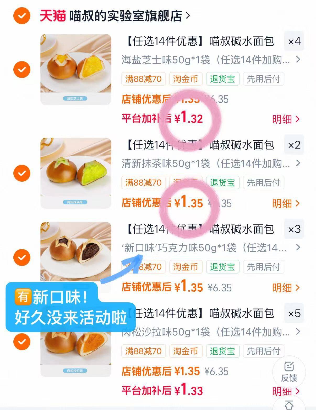 喵叔碱水夹心面包多口味任意14件 18元发报员Z2026年04月12日 09:110举报 1.3元/个 喵叔碱水夹心面包 多口味任意 14件 18 降忦!https://m.tb.cn/h.ioGrTKB复制文案
