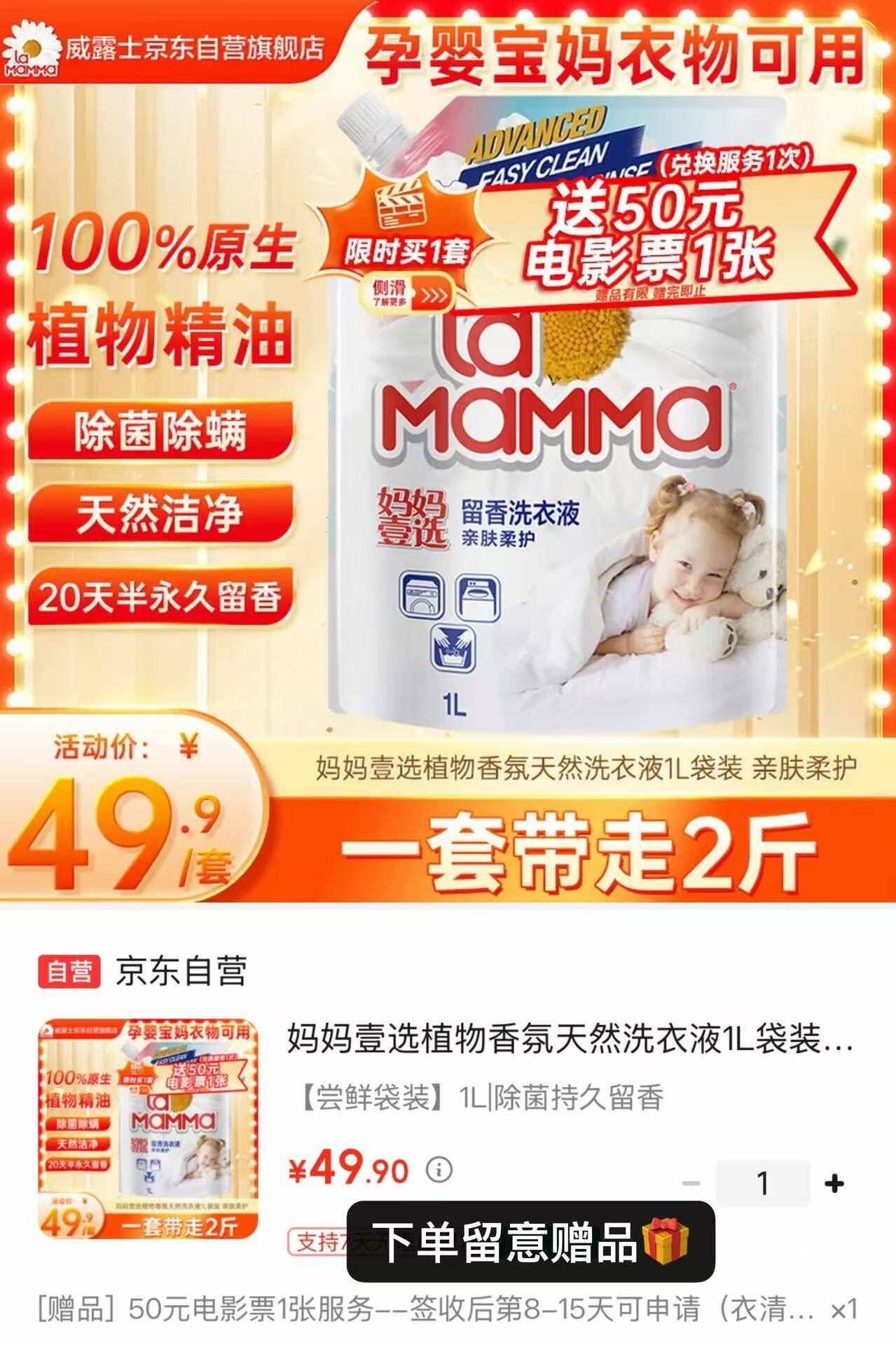 妈妈壹选洗衣液1L 49.9元发报员Z2026年04月12日 09:580举报 ——洗衣液 撸!速度——【自营】妈妈壹选 洗衣液1Lhttps://u.jd.com/jOrnDCE 49.9元 U,plus无限包U*下単贈电影票1张价值50元*签收第8-15天可兑 等于白送复制文案