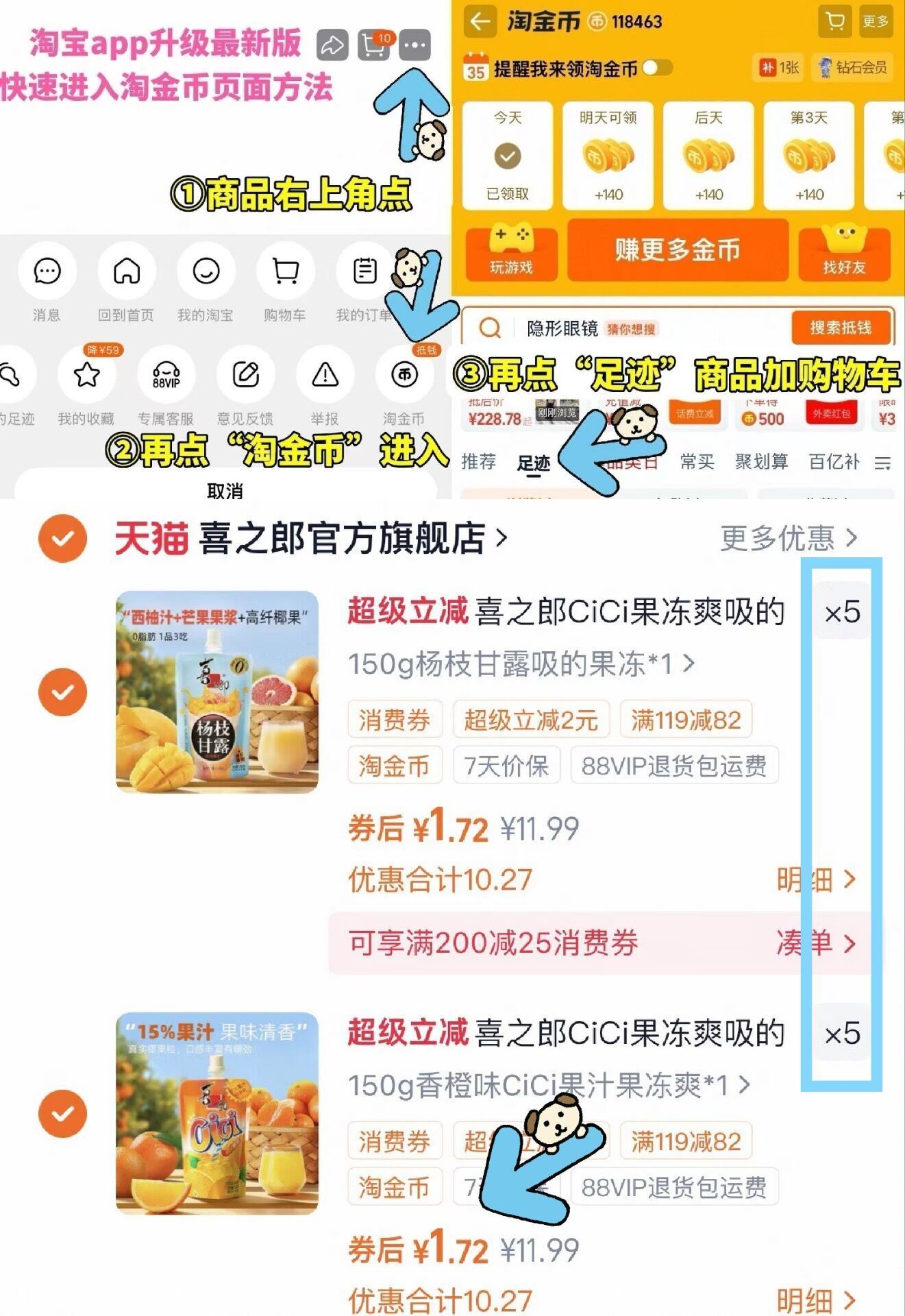 ②再点足迹-找到商品加车10件