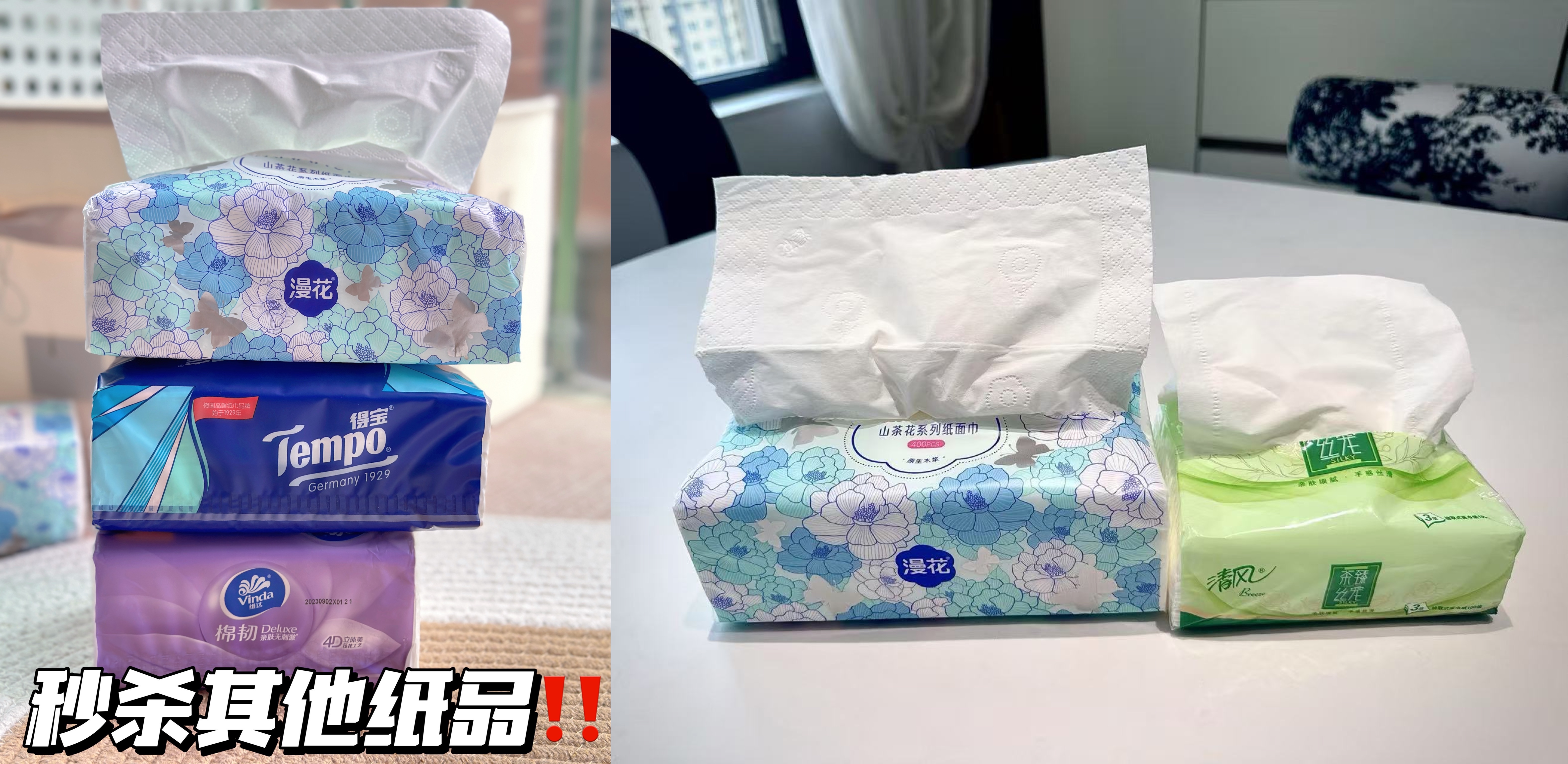 刚好桌上有两包纸,这对比,漫花品质真的好太多