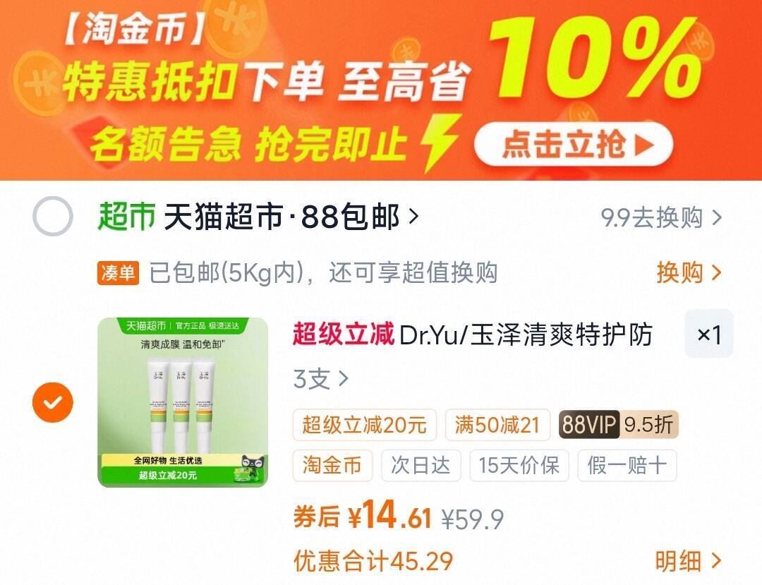 玉泽清爽特护防晒乳10ml*3只 14.6元发报员Z2026年04月12日 17:100举报 4.8/只 下拉拍88vip 14.6元玉泽清爽特护防晒乳10ml*3只https://m.tb.cn/h.iMBNzhm复制文案