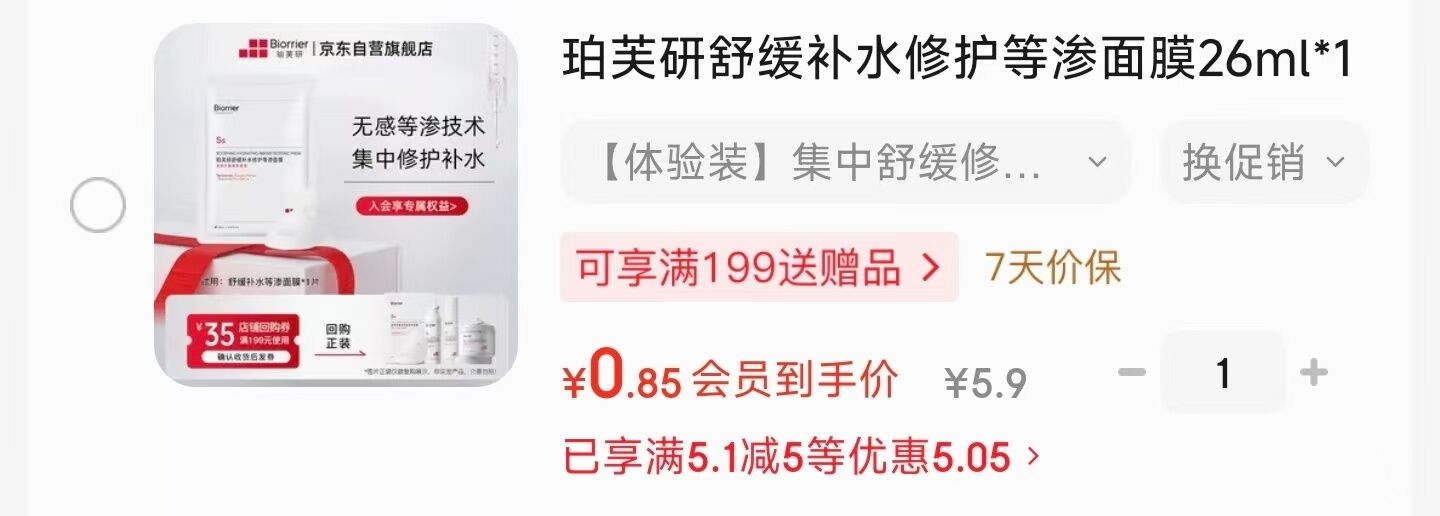 入会学生号面膜 0.85元