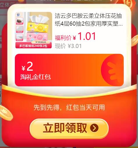 洁云压花抽纸2包 1元