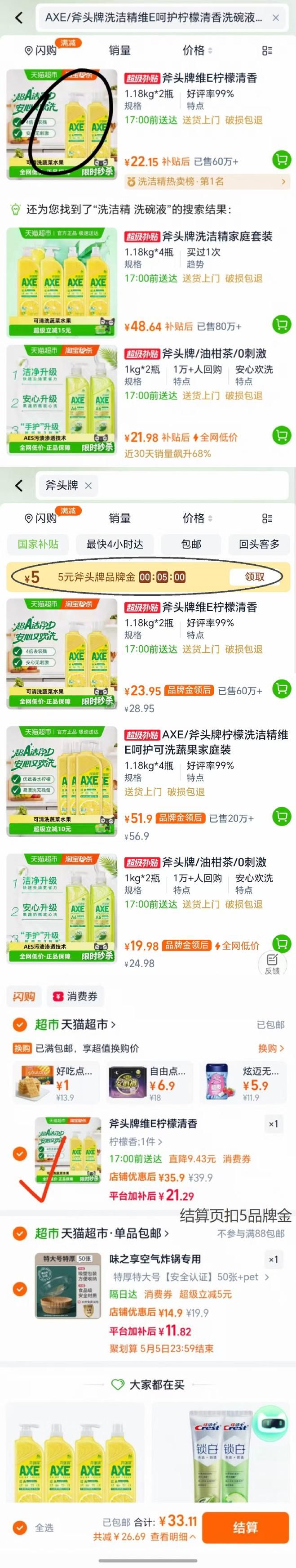猫超首页搜【斧头牌】部分号有5品牌金,以超市卡抵扣