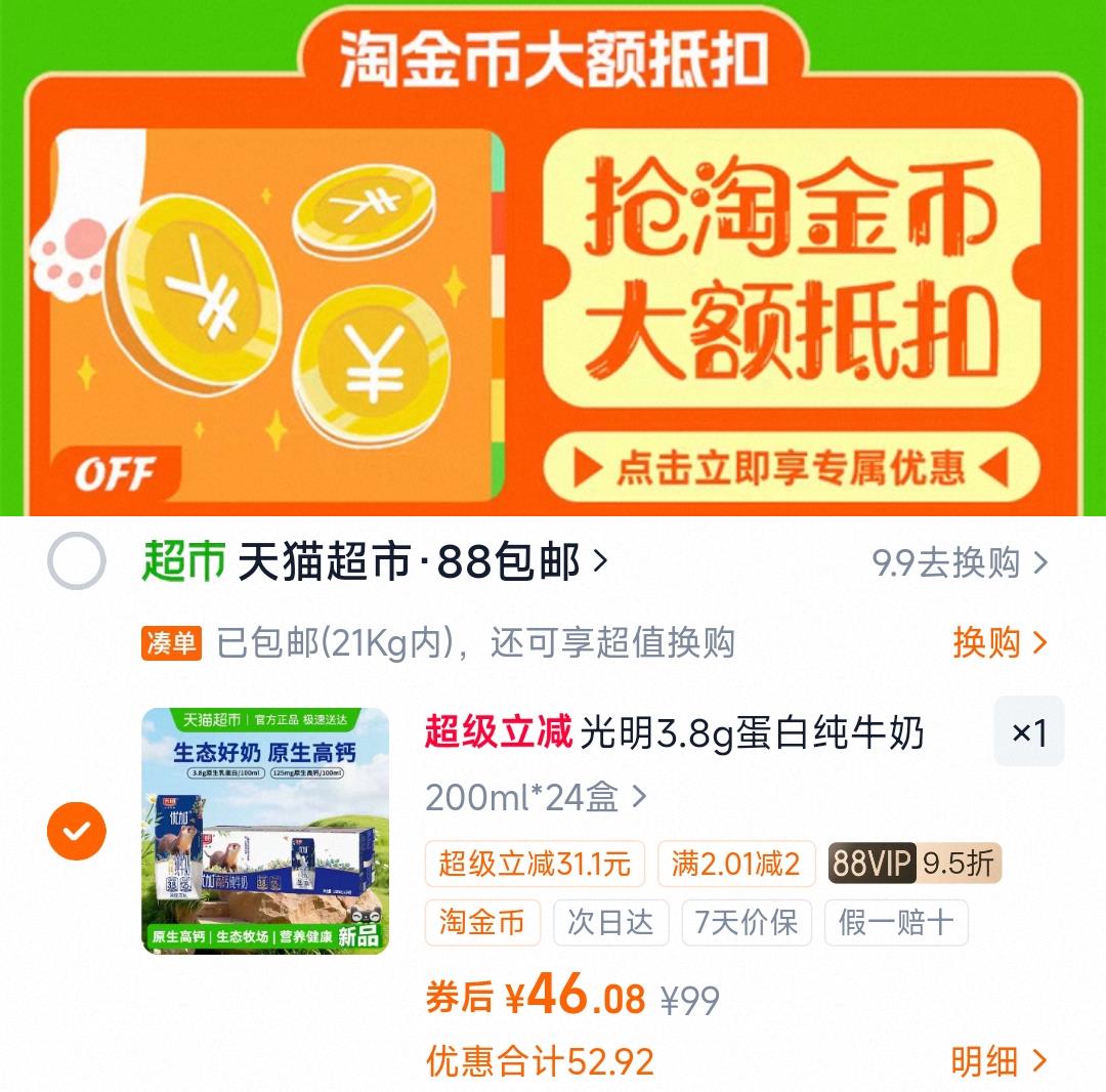 光明优加高钙纯牛奶200ml*24盒 46元发报员Z2026年04月13日 14:130举报 下拉拍,88vip46元 折1.9元/盒光明优加高钙纯牛奶200ml*24盒https://m.tb.cn/h.iLGNUAR复制文案