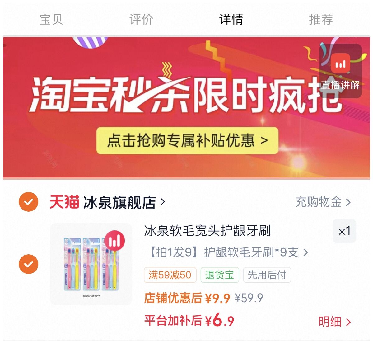冰泉牙刷9支 6.9元