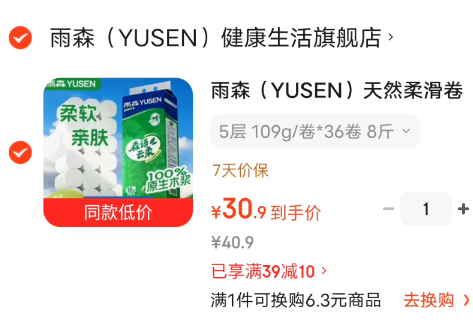 雨森 森语云柔奍纸 109g*36奍