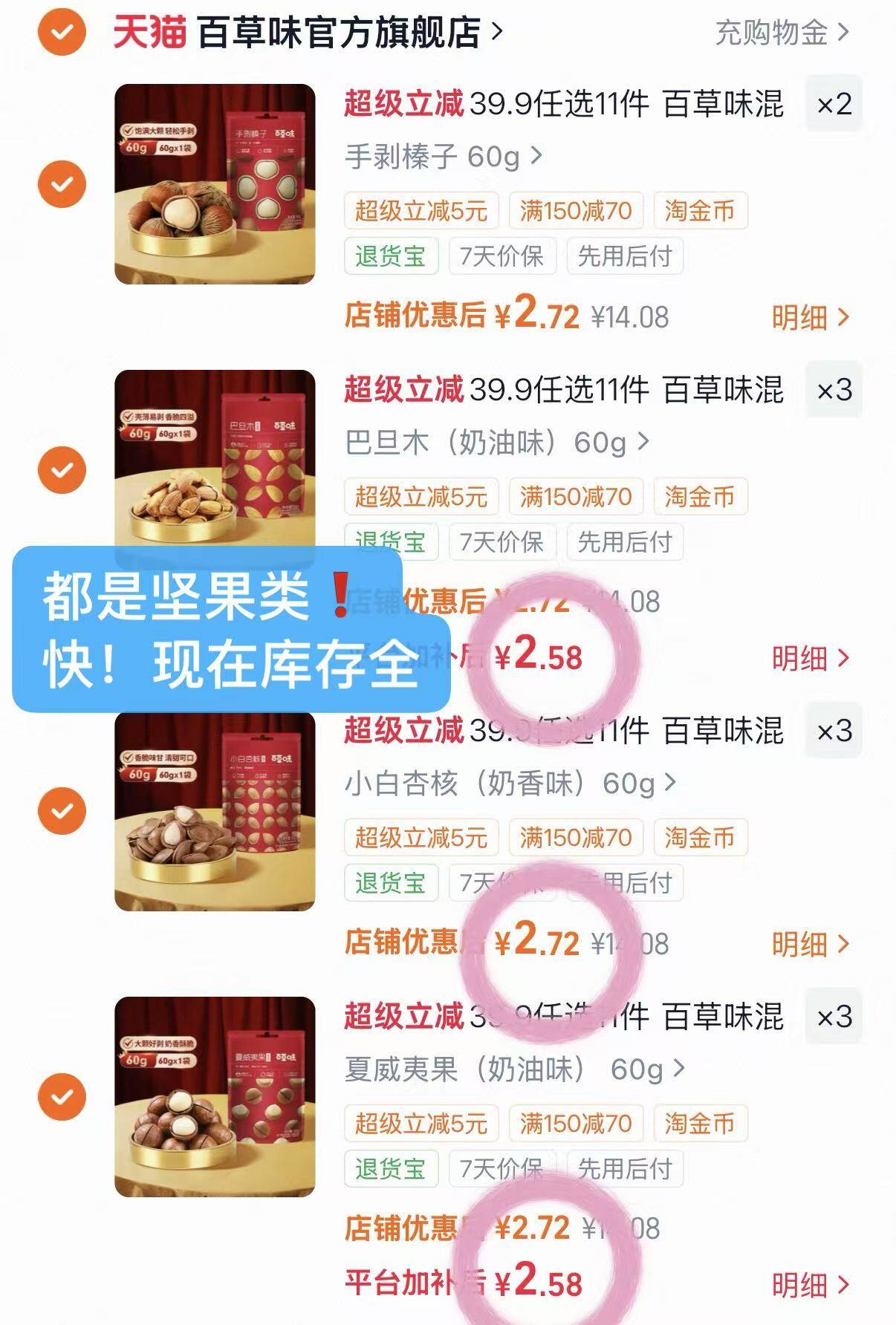 百草味坚果零食 2.6元/袋 发报员Z 2026年04月13日 16:52 0 举报 2.6元/袋 百草味坚果零食 多款任意 11件 29 降忦囤!https://m.tb.cn/h.ioc3GCr 复制文案