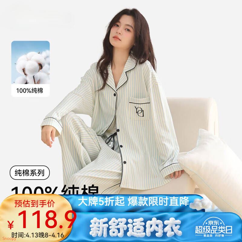 雅鹿 睡衣女夏季纯棉长袖套装【59】https://u.jd.com/j1nBJN9