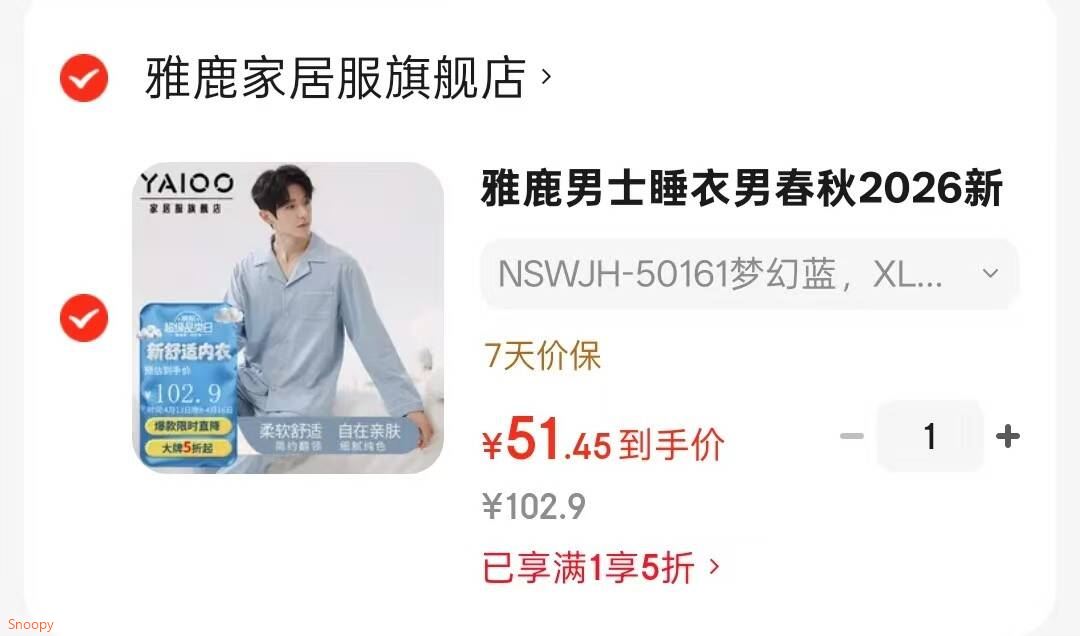 雅鹿男士睡衣男春秋纯棉长袖大码全棉套装 51.4元发报员Z2026年04月13日 20:130举报 领5折券 https://u.jd.com/jOngjTi 雅鹿 男士睡衣男春秋 纯棉长袖大码全棉套装【51.4】https://u.jd.com/j1niu3a 复制文案