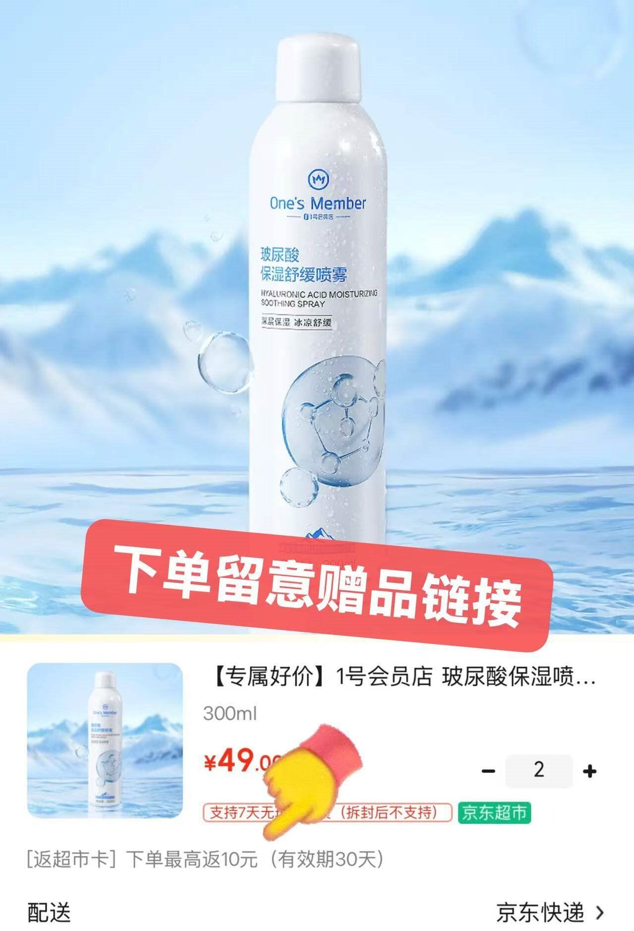 Ones Member玻尿酸补水喷雾300ml 买2件59元,反超市卡10元发报员Z2026年04月13日 22:330举报 ——补水喷雾发車——【自营】Ones Member玻尿酸补水喷雾300mlhttps://u.jd.com/jgnUQKC买2件59元,反超市卡10元*才24.5元/瓶 华熙生物专利复制文案