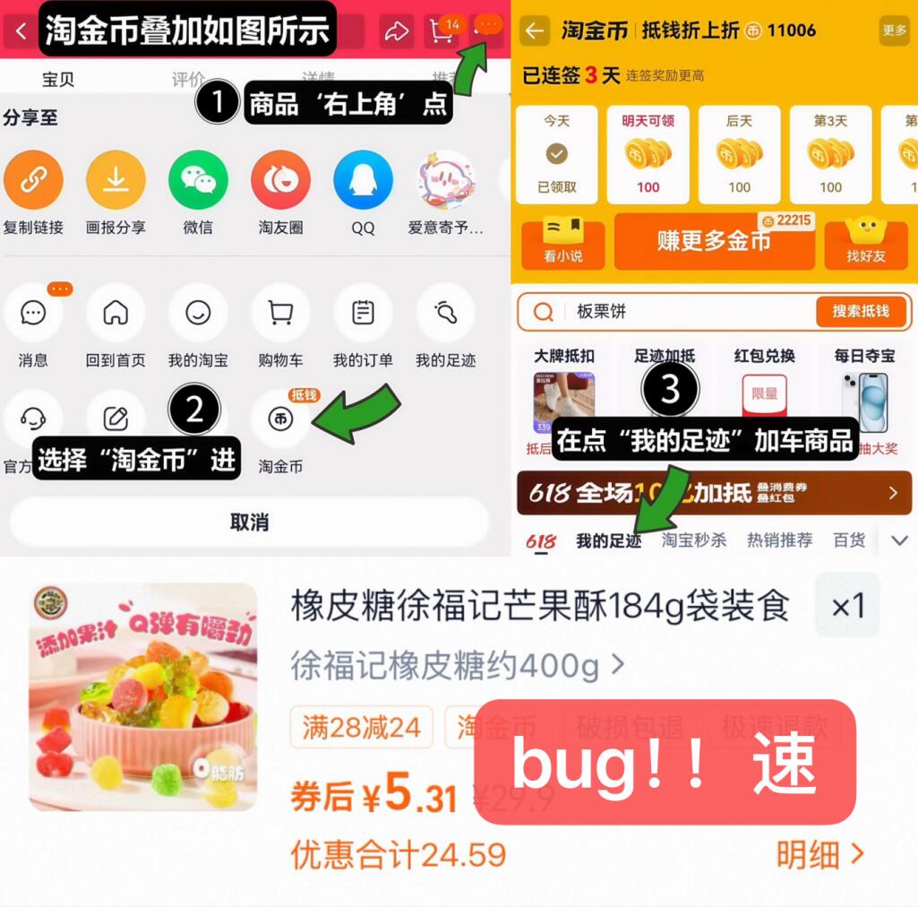 徐福记果汁橡皮糖400g装 5.3元发报员Z2026年04月14日 00:000举报 5.3元无敌神圿 快锁徐福记果汁橡皮糖400g装 ①如图点右上角3个点,选淘金币②选我的足迹-找到商品拍https://m.tb.cn/h.iohkx1W复制文案