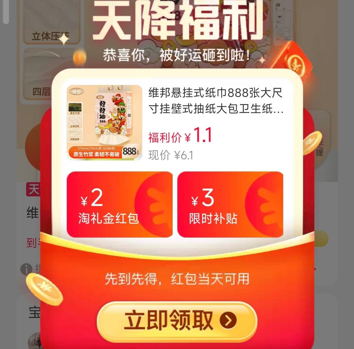 連度 维邦 抽纸 超大提 1元