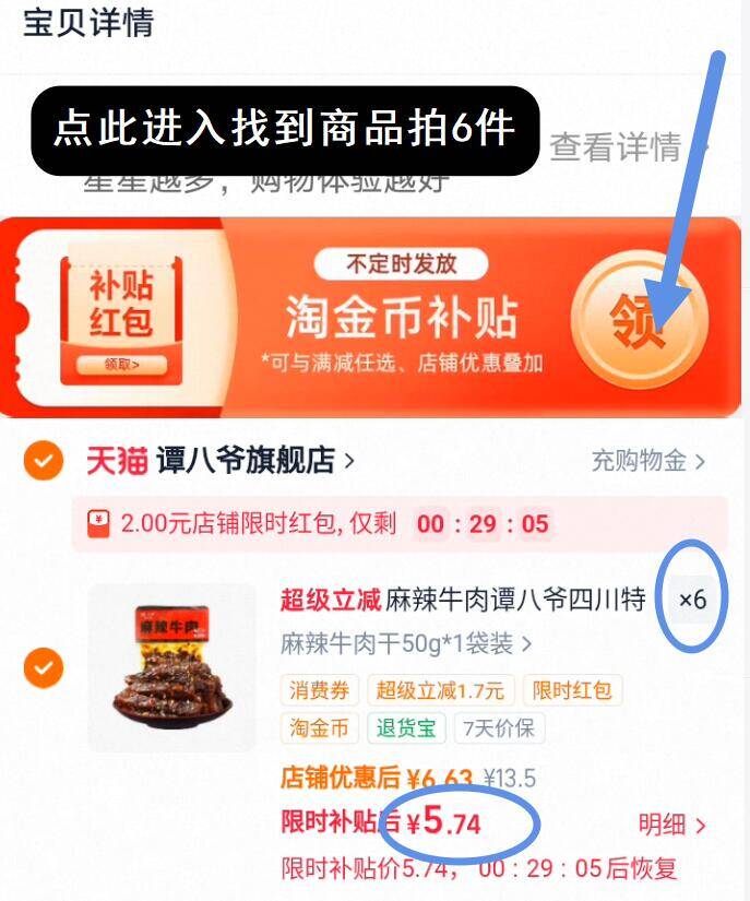 谭八爷麻辣牛肉干50g*6袋 拍6件 34.4元发报员Z2026年04月14日 10:450举报 5.7元/件 拍6件34.4元叠3.3淘金币 2店铺虹笣需下拉详情进淘金币会场拍【谭八爷】麻辣牛肉干50g*6袋https://m.tb.cn/h.ioKuWzL复制文案
