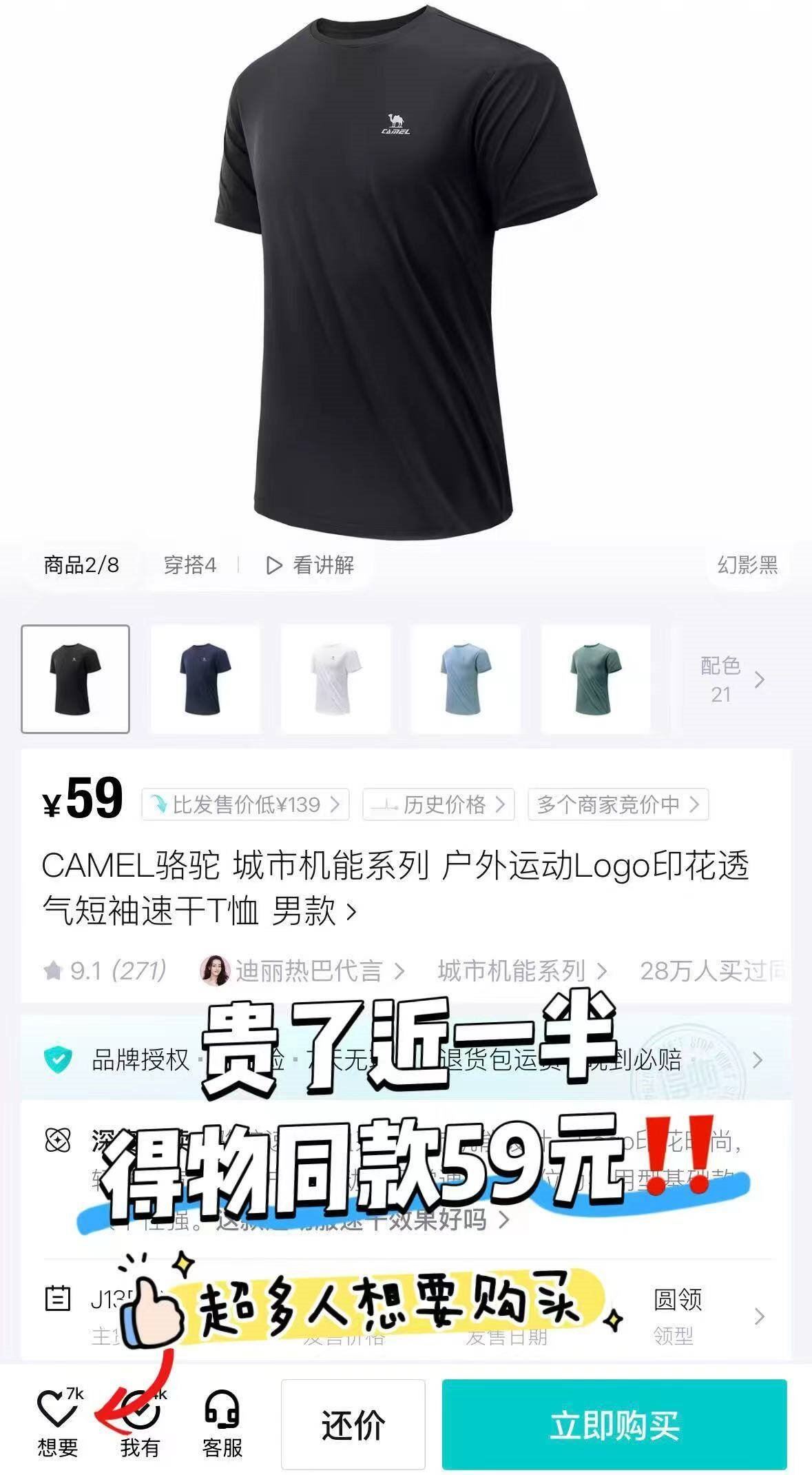 骆驼 男女速干短袖T恤/短裤
