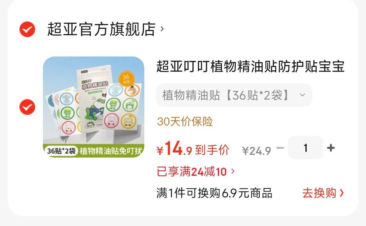 超亚叮叮植物精油防蚊贴36贴*2袋 14.9元发报员Z2026年04月14日 16:230举报 超亚叮叮植物精油防蚊贴36贴*2袋14.9元,折0.2/贴https://u.jd.com/jgSsTwp复制文案