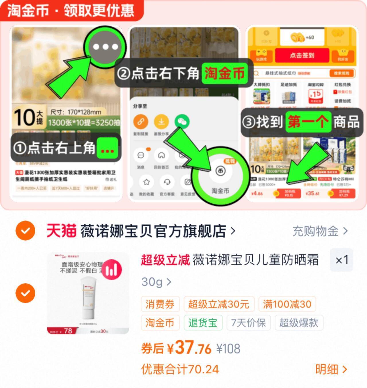 薇诺娜宝贝防晒霜30g 37.7元发报员Z2026年04月14日 17:180举报 37.7元薇诺娜宝贝防晒霜30g这歀0 宝宝就能用 清水可卸~如图叠琻币 质地轻薄不刺激!https://m.tb.cn/h.ioh6Q4M复制文案