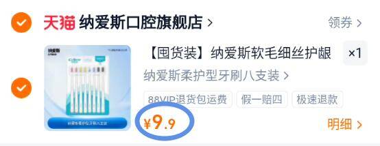 神圿快冲 折1.2元 无券拍9.9元 拍第1选项 纳爱斯 软毛牙刷8支发报员Z2026年04月14日 17:200举报 神圿快冲 折1.2元/支无券拍9.9元!拍第1选项【纳爱斯】软毛牙刷8支https://m.tb.cn/h.iLo9Ksp复制文案