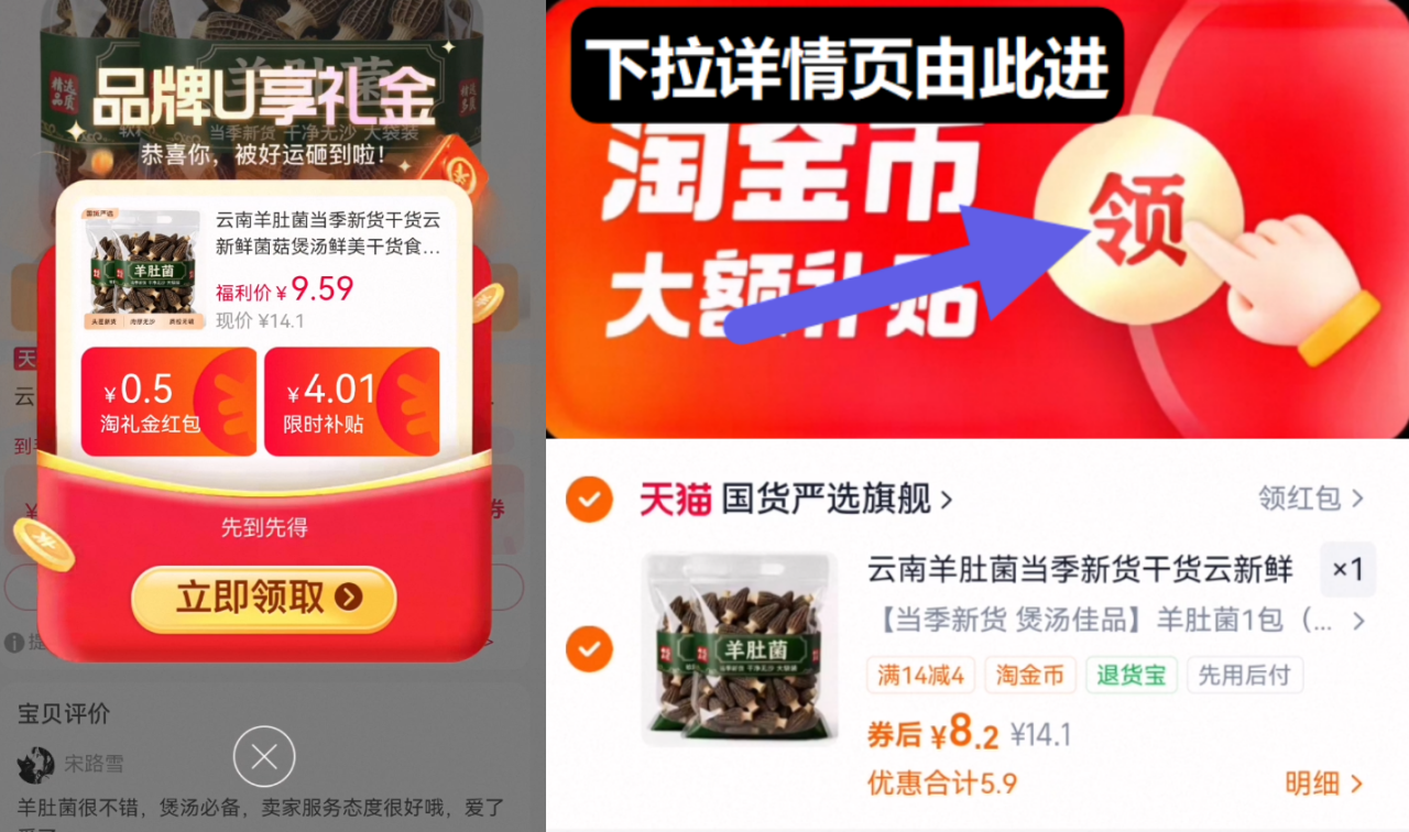 羊肚菌(16-17根)超大根 8.2元发报员Z2026年04月14日 18:400举报 8.2元神圿 懂的冲叠1.4元金币!下拉详情淘金币拍羊肚菌(16-17根)超大根https://m.tb.cn/h.ioi8o34复制文案
