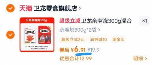 卫龙亲嘴烧300g*2袋 6.9元发报员Z2026年04月14日 22:510举报 今日好圿车合集第10款3.4元/袋神圿 速度冲拍下6.9元600g,叠0.99淘金币【卫龙】亲嘴烧300g*2袋https://m.tb.cn/h.ipyyJ48复制文案