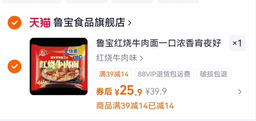 鲁宝红烧牛肉面100g*24袋 25.9元发报员Z2026年04月15日 00:040举报 1元/袋速!比干吃面都便宜拍下25.9元24袋!直接拍【鲁宝】红烧牛肉面100g*24袋https://m.tb.cn/h.ionWjir复制文案