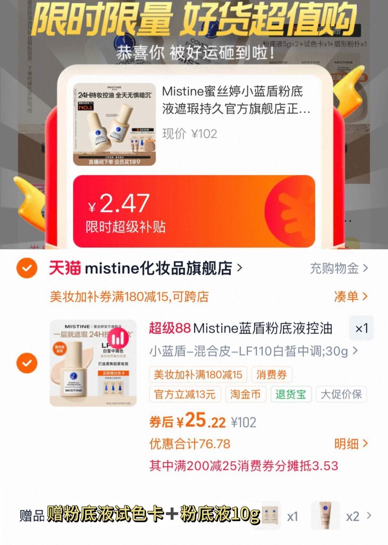赠粉底液试色卡 粉底液10g
