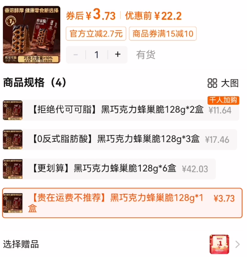 海玉黑巧克力夹心蜂巢脆128g 3.7元发报员Z2026年04月15日 12:550举报 2.7元神圿 手慢无叠1首单 3.7淘金币 1店铺虹包拍下3.7元,h.p赠1元【海玉】黑巧克力夹心蜂巢脆128ghttps://m.tb.cn/h.iKjiCZB复制文案