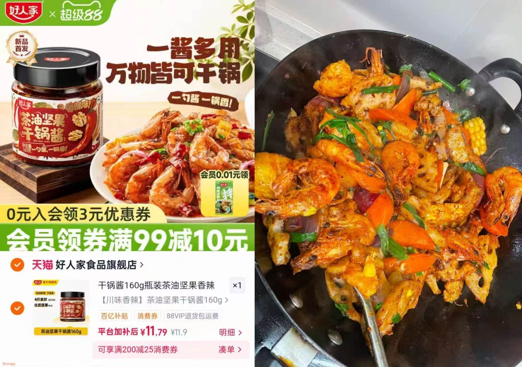 好人家茶油坚果干锅酱 叠金币11.7元 160g 厨房小白 也能秒变大厨发报员Z2026年04月15日 15:330举报 好人家茶油坚果干锅酱叠金币11.7元 160g厨房小白 也能秒变大厨 一勺下去 鲜香瞬间爆开-https://m.tb.cn/h.ipRNGxN复制文案