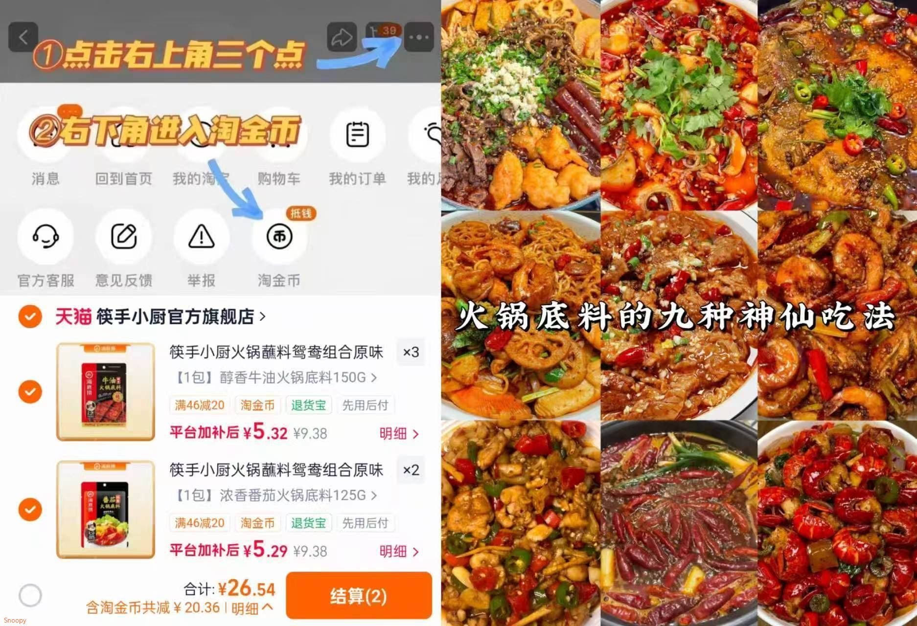 海底捞火锅底料 拍5件 26.5元发报员Z2026年04月15日 16:040举报 5.3/件 海底捞火锅底料如图叠金币拍⑤件26.5元浓郁醇厚 涮肉煮菜都上头火锅/煮面/麻辣烫.全适配-https://m.tb.cn/h.ip8Dw4G复制文案