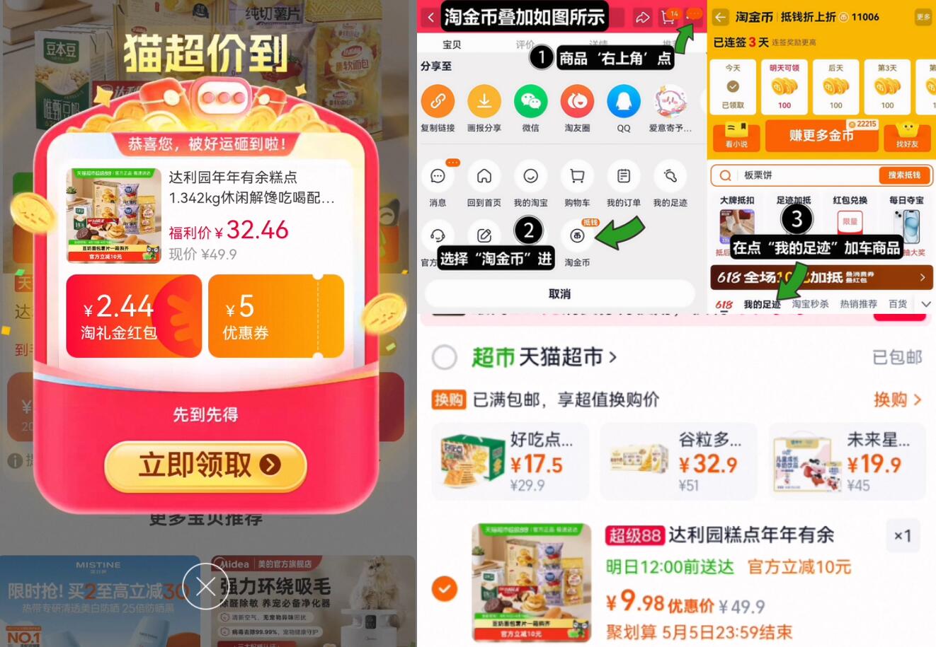 达利园年年有余糕点1.342kg 9元发报员Z2026年04月15日 16:340举报 有货地区速度!88vip9元!叠限时礼金 6元淘金币【达利园】年年有余糕点1.342kg①如图点右上角3个点,选淘金币②选我的足迹-找到商品拍https://m.tb.cn/h.iLWDGzs复制文案