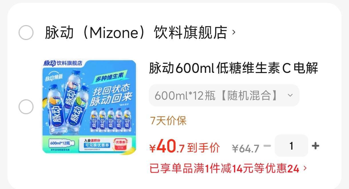 脉动低糖维生素C电解质水600ml*12瓶 40.7元发报员Z2026年04月15日 17:180举报 脉动低糖维生素C电解质水600ml*12瓶40.7元,折3.3/瓶-领http://jc.my22.info/j7cKldL拍https://u.jd.com/jDB5kFA复制文案